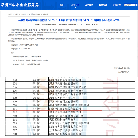 2023年7月21日, 喜報傳來,在工業(yè)和信息化部組織開展的第五批專精特新“小巨人”企業(yè)培育活動中,深圳市深賽爾股份有限公司順利通過審核及公示。
